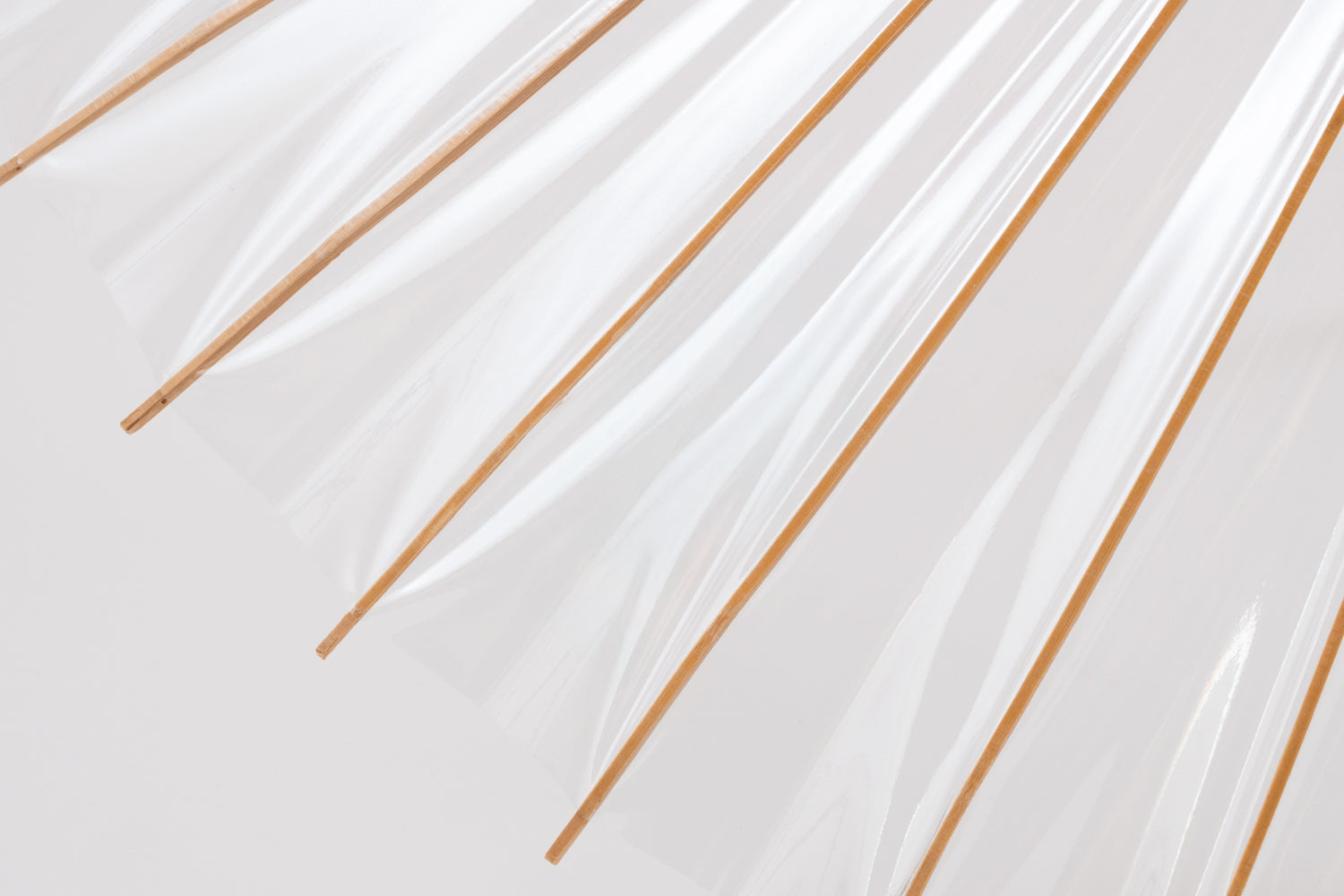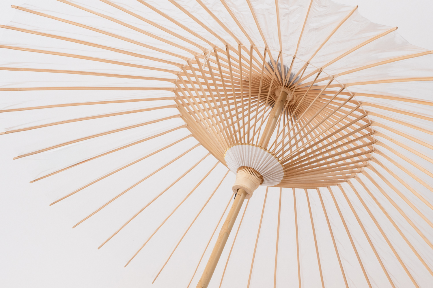為了讓人盡情欣賞傘骨精緻的結構,傘面選用了獨家開發的透明乙烯材質。為了判斷與竹骨的最佳契合度,我們不斷試作,最終找到最適合和傘的厚度——僅 0.08 毫米的薄度。